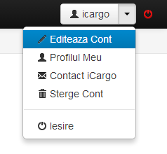 Sectiunea destinata administrarii contului de utilizator se poate accesa doar daca utilizatorul este autentificat, folosind meniul din dreapta sus a ecranului si apasand pe Editeaza Cont.